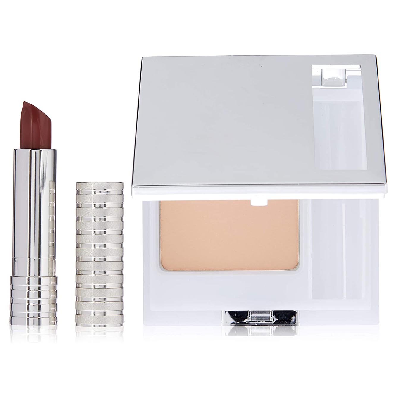 Clinique makeup kits and makeup eye shadow palette. Super Powder Double Face Powder (02 matte beige) plus long last lipstick (12 blushing nude soft shine) 2 piece travel club kit. It is a perfect combination for lips and face.