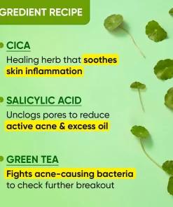 Sulphate-free, anti-acne face wash for oil free, clear skin.Packed with Cica, Salicylic Acid & Green TeaReduces active acne with gentle yet effective cleansing.Controls excess oil & soothes skin inflammation.Checks further breakout, this facewash is ideal for oily & acne-prone skin. Anti-Acne Face Wash: Powered by Super Cica Technology, it gently yet deeply cleanses pores of dirt, pollution & excess oil to treat acne from the first step of your skincare routine for calm, clear & acne-free skin