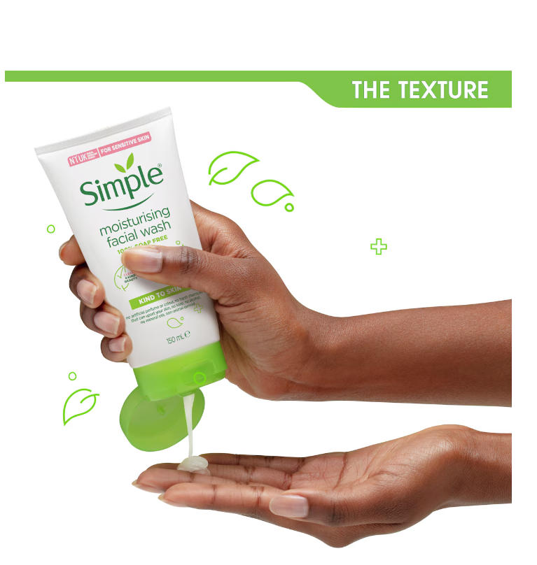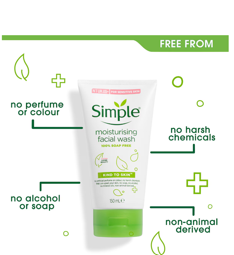 We believe in continuously working to be kinder to the planet, so our Kind to Skin Moisturising Facial Wash is vegan and Simple is certified cruelty-free by PETA, we don’t test on animals anywhere in the world! Our Simple Moisturising Facial Wash is also 100% recyclable, yay!