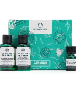 The Body Shop Clean & Gleam Tea Tree Skincare Gift Set – Energize and Fortify – Purifying & Refreshing for Oily, Blemished Skin – Vegan – 3 Items